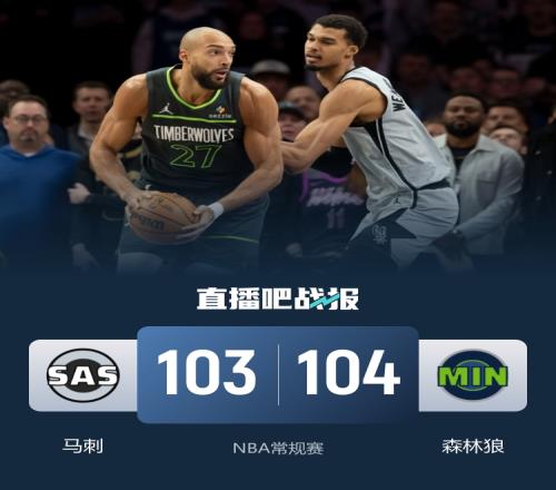 开场后马刺率先打出攻势以11-0开局,爱德华兹为森林狼打破得分荒,随后麦克丹尼尔斯和兰德尔轮番追分,马刺外线手感不错接连用三分回应保持场上优势。第二节上来森林狼打出9-0追到只差1分,马刺暂停调整后迅速回应一波攻势再度拉开比分,文班亚马多次单打戈贝尔得手帮助马刺将分差拉大到两位数,上半场马刺领先13分。易边再战,马刺外线手感依旧火热,马刺继续扩大场上优势,森林狼进入轮换阶段后里德站出来为球队重新咬住比分。末节上来森林狼就掀起10-2的反扑,马刺运动战手感不佳通过罚球拿分,但森林狼追分势头依旧凶猛,并且在最后时刻完成反超,爱德华兹抛投帮助森林狼领先1分,文班亚马和福克斯最后连续进攻未中,最终森林狼104-103逆转马刺。